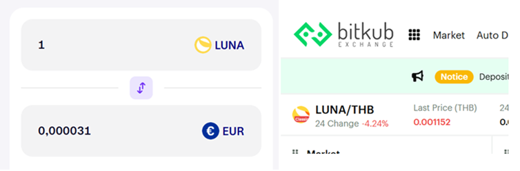 Some exchanges still refer to Terra Classic using LUNA, including examples like Kraken and Bitkub.