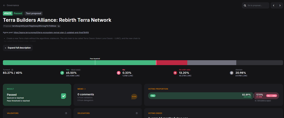 That proposal created the new chain, gave that new chain the names Terra and LUNA, and pushed the original chain into Terra Classic, LUNC, USTC, and so on.