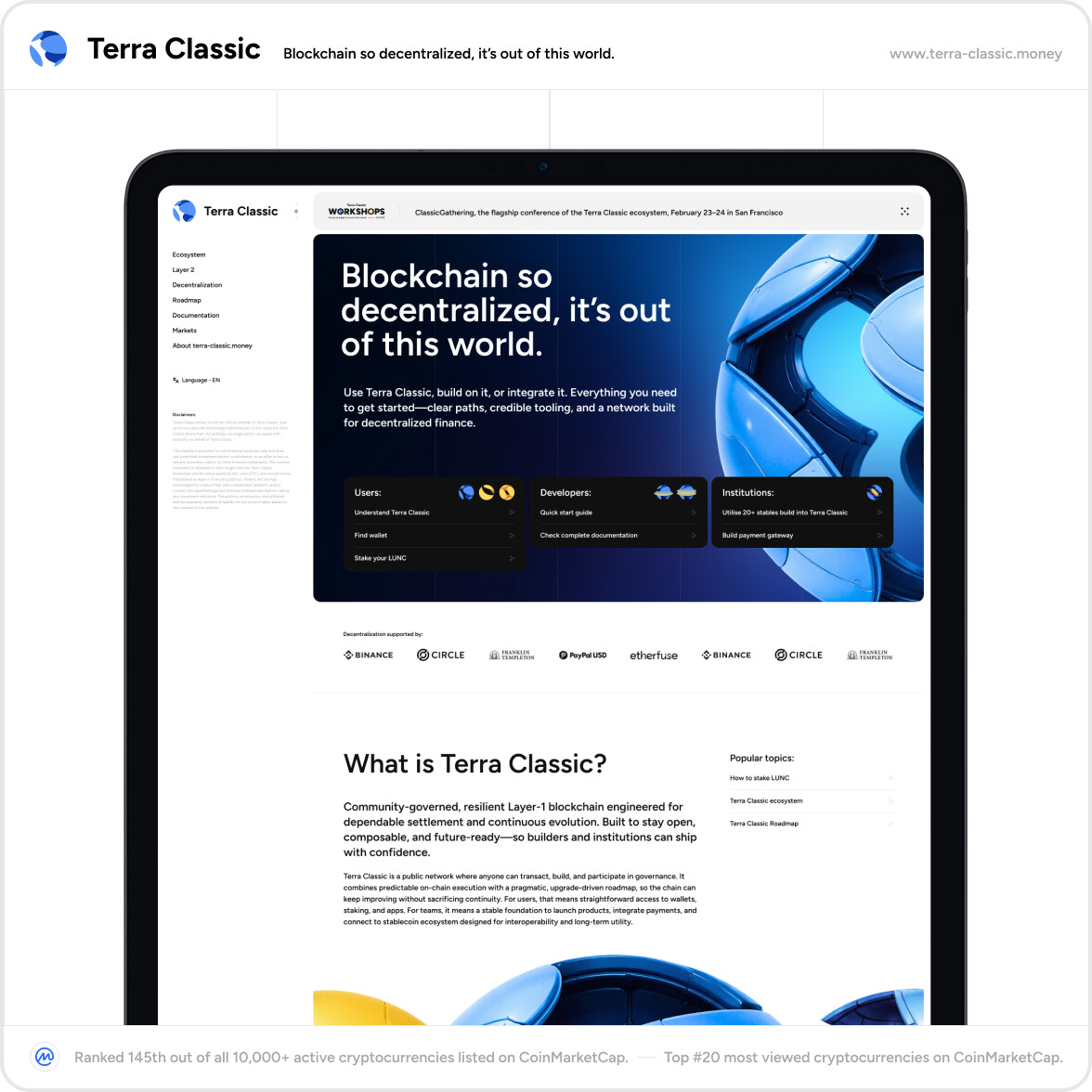 Terra Classic already has the fundamentals: decentralization, builders, ecosystems, and global stakeholders. What it needs now is a credible, future-forward front door that turns attention into participation.